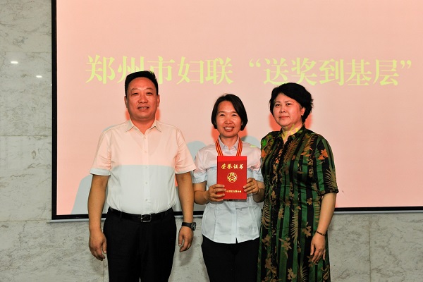6月13日上午,鄭州市婦聯(lián)“送獎到基層”活動走進鄭州地鐵。市婦聯(lián)黨組書記、主席馬斐穎,黨組成員、副主席周宇紅,辦公室主任李彩玲一行來到鄭州地鐵,向榮獲“全國三八紅旗手”稱號的公司副總工程師、工程建設項目管理六部常務副經(jīng)理、軌道交通設計研究院董事長王賀敏,和榮獲“全國巾幗文明崗”稱號的運營分公司“瑞麗創(chuàng)新工作室”頒獎,并看望婦女職工,將溫暖送到基層。