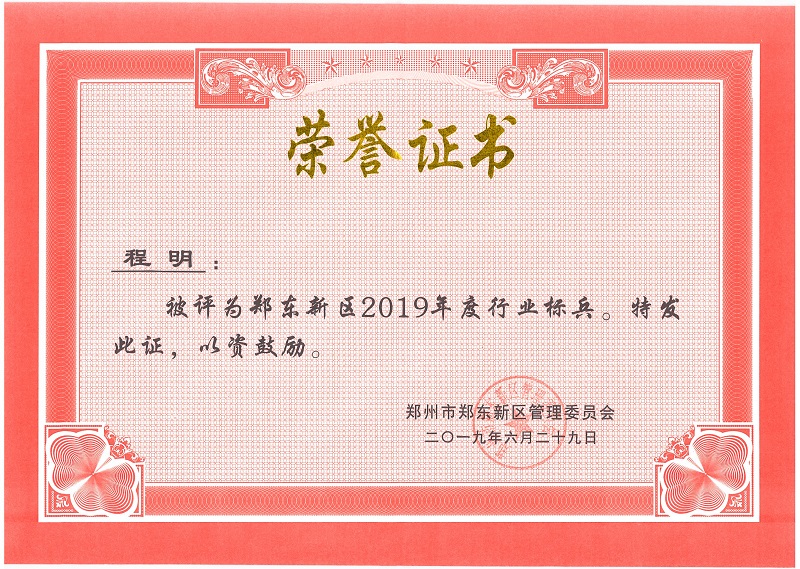 砥礪前行 不忘初心——地鐵集團供建中心副主任程明喜獲鄭東新區(qū)2019年度行業(yè)標(biāo)兵